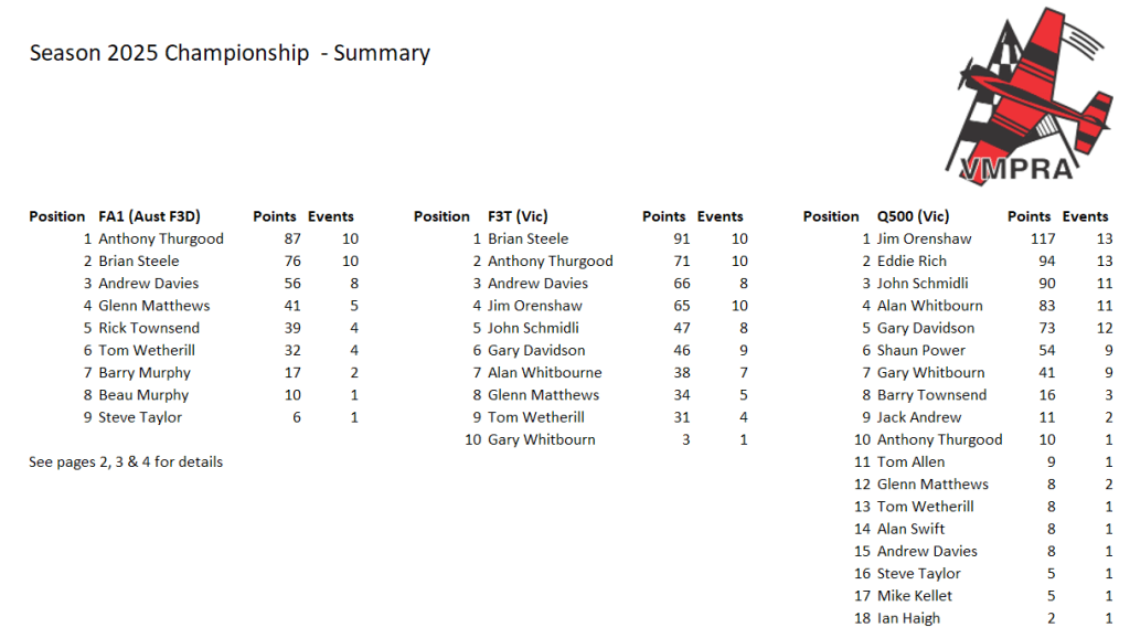 This being the 2nd last championship race for the 2025 season, with only Munro to be flown in November, the championship placings are really being consolidated.